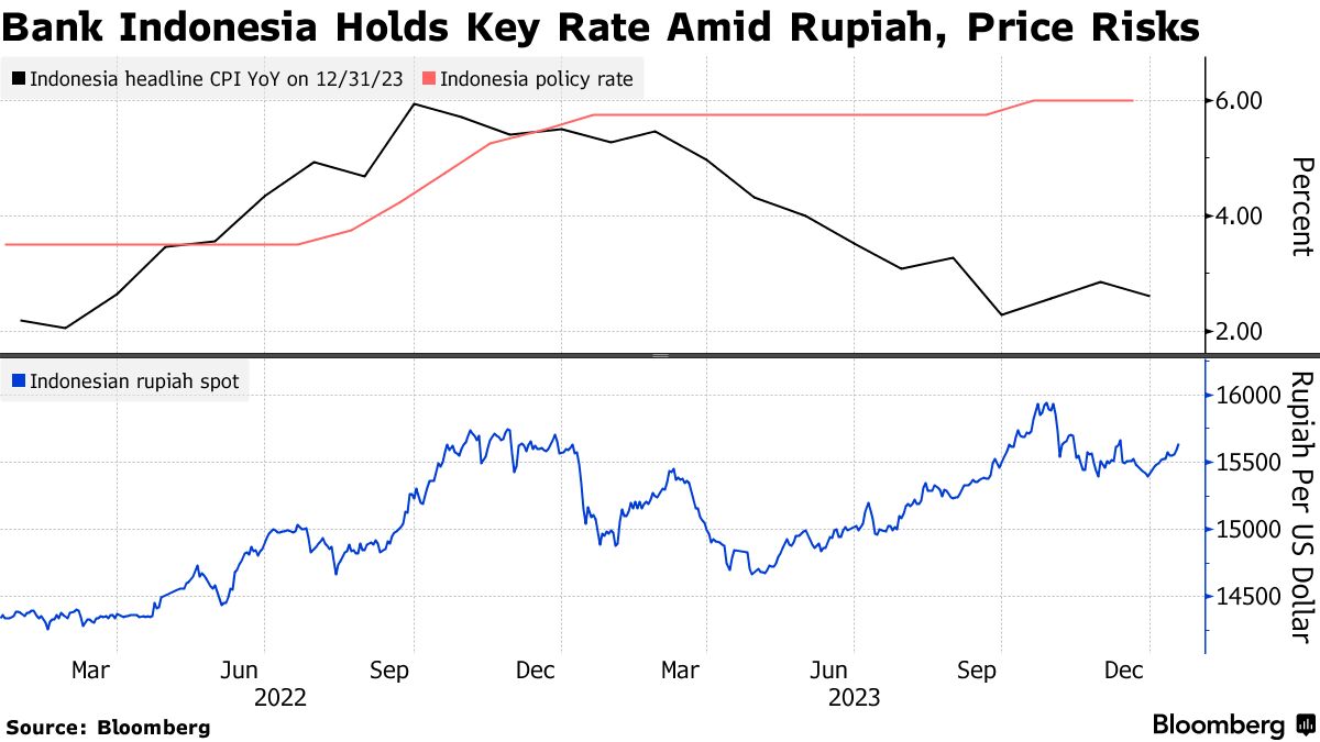 中央银行周三将BI利率维持在6%,这符合彭博社调查的28位经济学家的预期。此前,决策者们曾发出信号,表示在今年上半年不太可能降息,因为卢比可能在美联储放松政策方面出现不确定性时遭遇抛售风险。