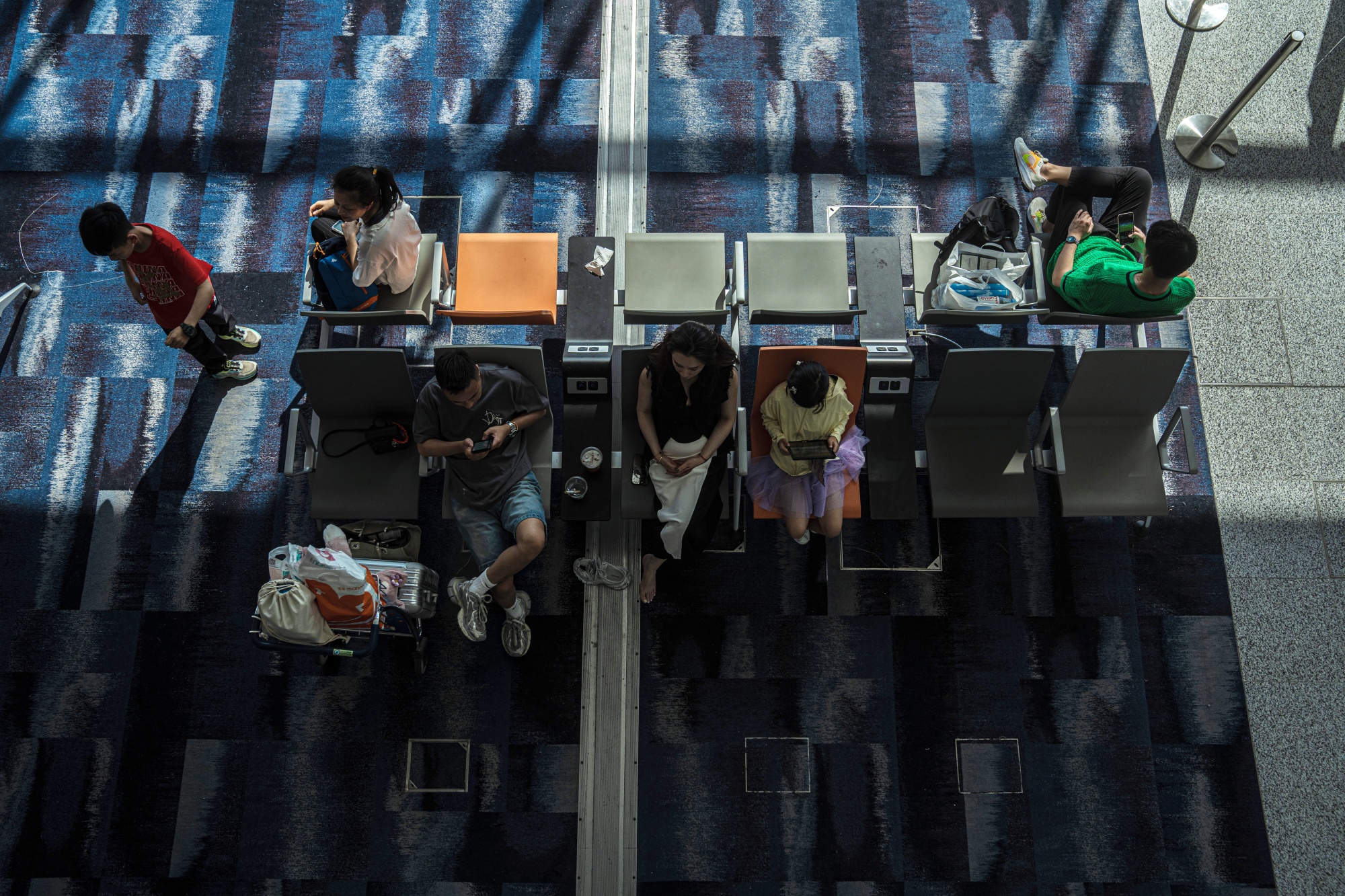 香港国际机场的旅客。摄影师:Lam Yik/Bloomberg香港财政司司长陈茂波表示,他没有计划对居民征收离境税,拒绝了一项旨在缓解政府日益扩大赤字的提议。