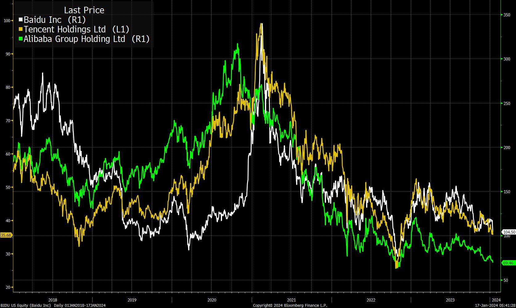 现在,如果你注意到2018年初有一个月,最拥挤的交易是做多FAANG + BAT。这些天你不太听到BAT这个缩写了。这个缩写代表百度、阿里巴巴、腾讯,中国互联网行业的三大巨头。