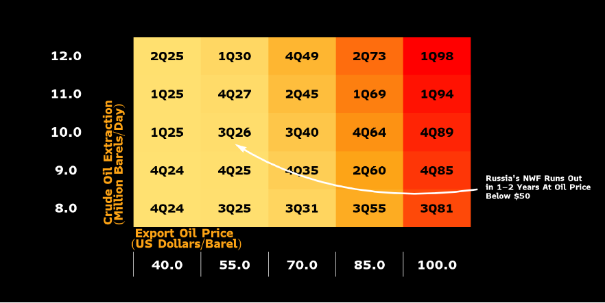 *“*如果石油价格继续忽视以色列-哈马斯战争的供应中断风险,NWF流动资产的剩余存量将继续减少,使俄罗斯越来越容易受到冲击。如果俄罗斯的石油出口价格跌破50美元,它只能再维持一到两年。”