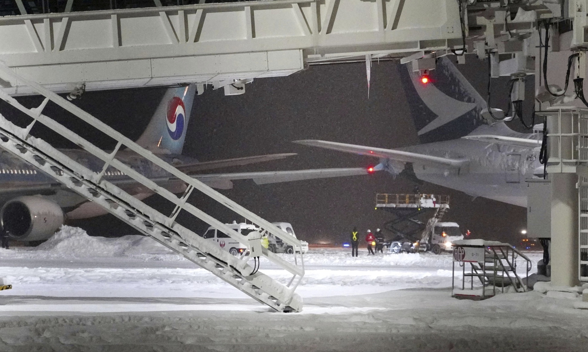 国泰航空CX583航班原定飞往香港,但在周二晚间发生事故时是空机,由于这起事故发生在推出时地面车辆在大雪中打滑,造成损坏,该航班将无限期停飞。韩亚航空表示,机上的289名乘客和机组人员均未受伤。
