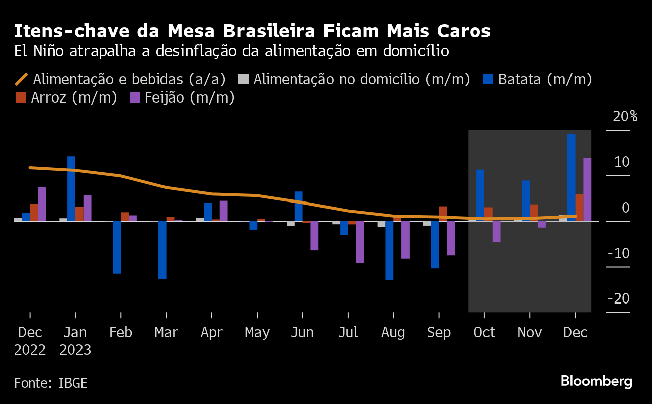 现在,巴西开始出现警示信号。根据本月11日发布的IBGE数据,由于食品和饮料成本上涨,以及土豆、黄豆、大米和水果等基本物品在高温和暴雨中变得更加昂贵,12月份由IPC计算的通货膨胀超出预期。在家中的食品成本(影响更为显著)上涨了1.34%,比上个月的0.75%上涨快得多。家庭食品的成本上涨了1.34%,比上个月的0.75%上涨快得多。