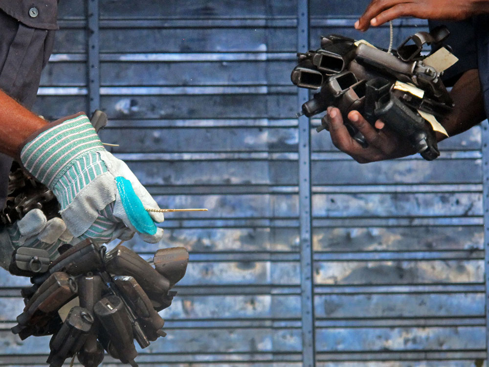 警察将被扣成一捆的被没收手枪运往等待的卡车,这发生在牙买加金斯敦的警察军火库。摄影师:David McFadden/Bloomberg 获取彭博晚间简报: 如果您收到了此新闻简报,请在此处注册,每天在您的邮箱中收到彭博的旗舰简报,以及我们的周末阅读版(每周六发布)。