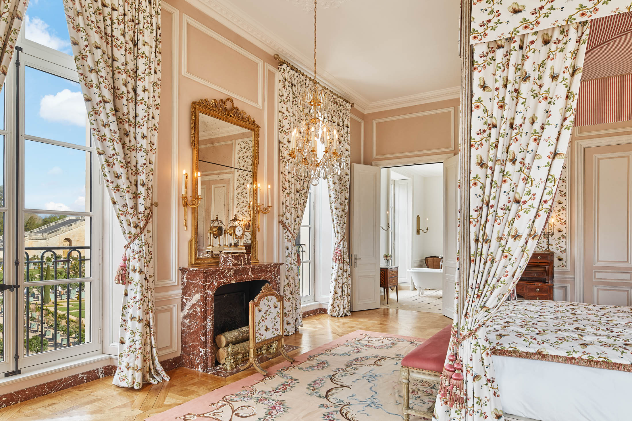 Grand Contrôle酒店的客房。摄影师:Renée Kemps**住宿选择:**奢华至极的Grand Contrôle是凡尔赛宫内第一家酒店,地理位置最为中心和豪华,但7月的房价约为每晚3500欧元(3800美元),只有当您在壮丽的庭院度过时光时才值得投资。如果您更愿意坐在体育赛事的看台上,可以考虑位于凡尔赛宫花园边缘的华尔道夫·阿斯托里亚凡尔赛-特里农宫酒店。