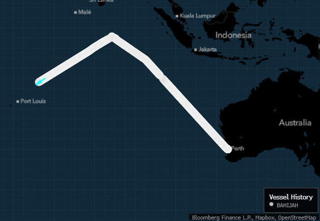 巴希贾号于1月5日离开西澳大利亚弗里曼特尔港前往约旦的亚喀巴。根据彭博编制的船舶数据,周二它改变了航向,前往南非的东伦敦。