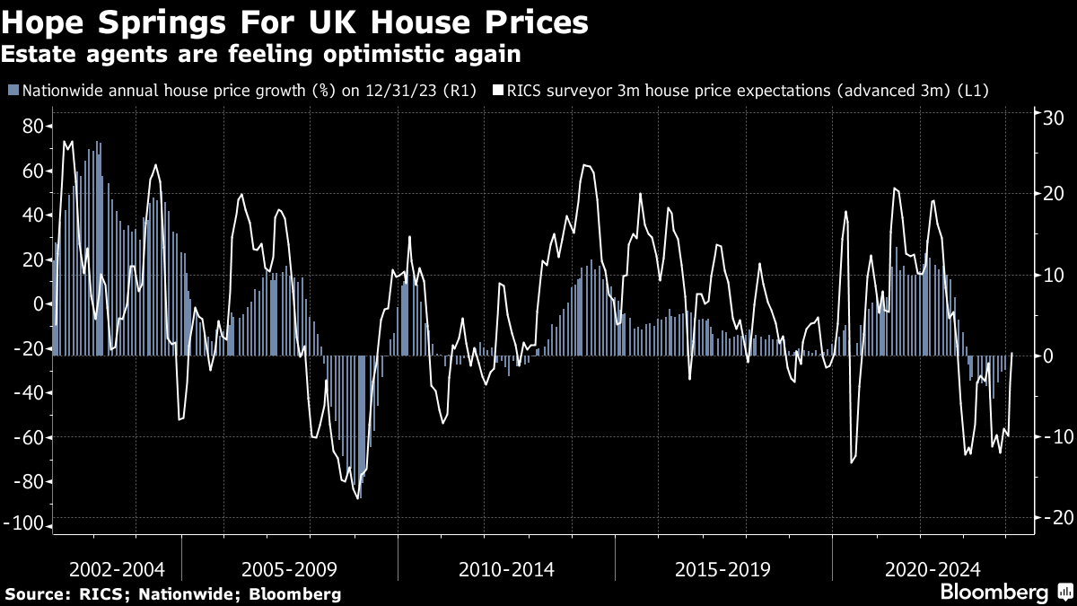 以下是伦敦一位经纪人的典型评论:“通货膨胀和抵押贷款利率的最近下降,再加上就业形势良好,持续支撑着需求。预算提振市场的前景可能会在接下来的几个月内减轻不确定性,因为选举临近。”