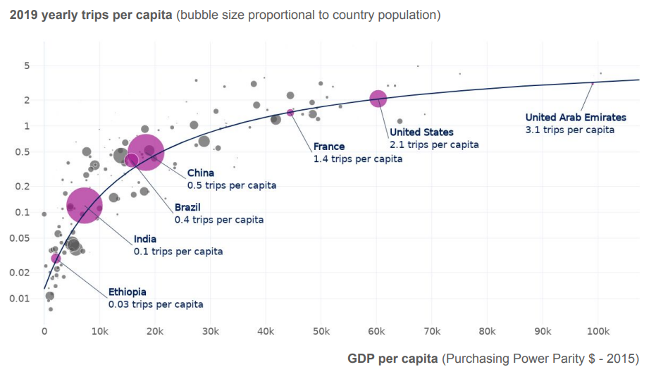 印度可能是第三大国内航空市场,但规模仍然相对较小。美国航空公司的机队规模更大,比印度所有航空公司的机队规模还要大。中国的飞行员数量是印度的六倍。