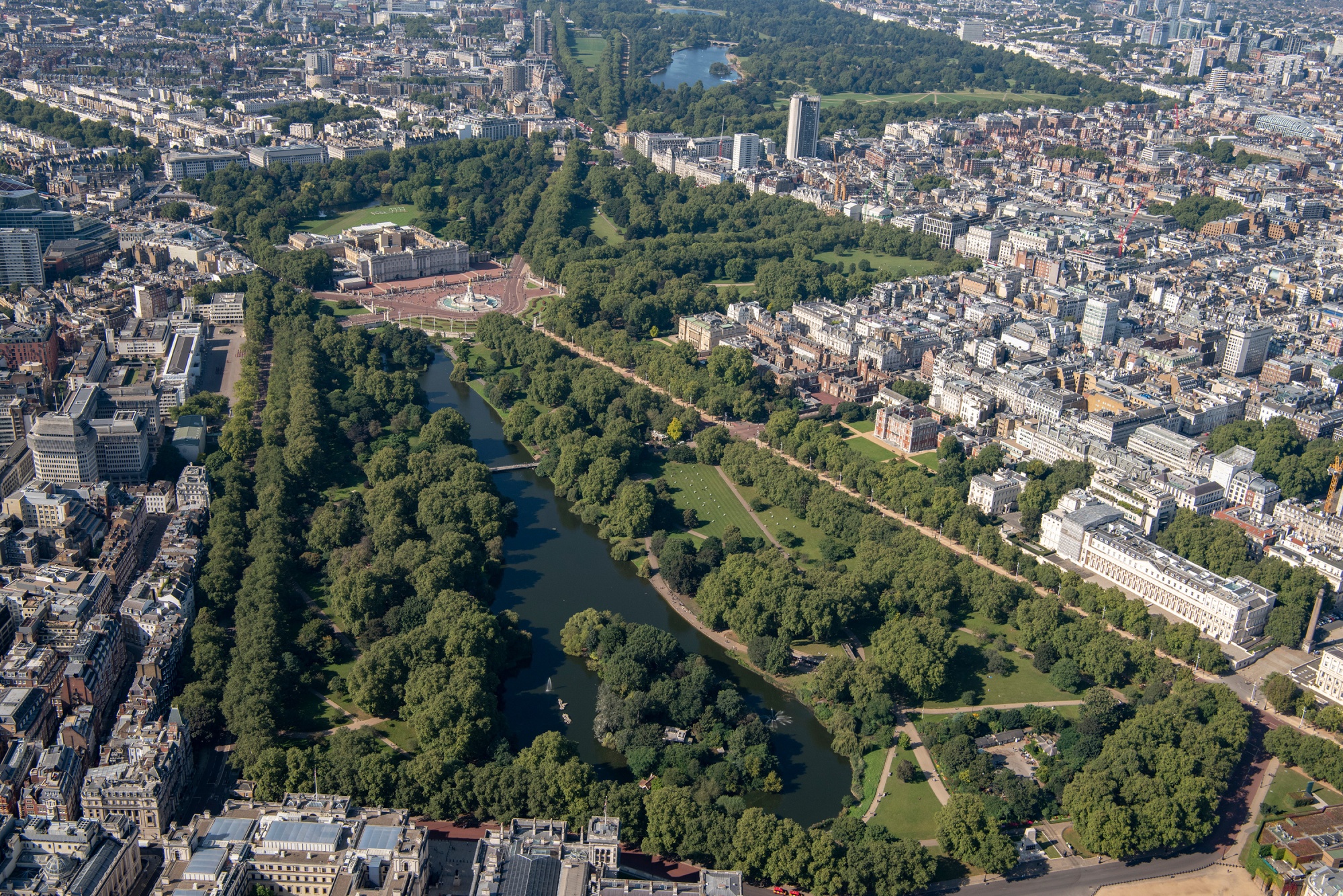 俯瞰伦敦圣詹姆斯公园,朝着格林公园和白金汉宫。来源:遗产图片/赫尔顿档案/盖蒂图片社伊朗出生的 Clearlake Capital Group 创始人、切尔西足球俱乐部的联合所有者Behdad Eghbali于3月以3400万英镑购买了俯瞰格罗夫纳广场的公寓。几个月后,中国最成功的天使投资人之一徐小平以3860万英镑购买了位于格林公园和伯克利广场之间的公寓。