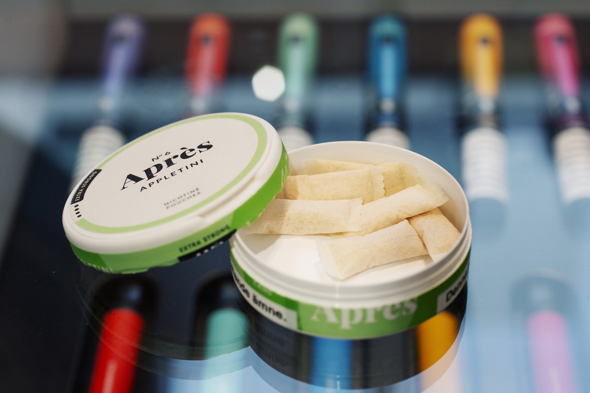 在斯德哥尔摩的时尚Södermalm社区的一个秋日下午,露台上挤满了喝咖啡、葡萄酒和啤酒的当地人。但是,桌子上散落着的不是烟灰缸或打火机,而是带有General、Velo、Zyn、Göteborgs Rapé和Ettan等品牌名称的小圆塑料容器。