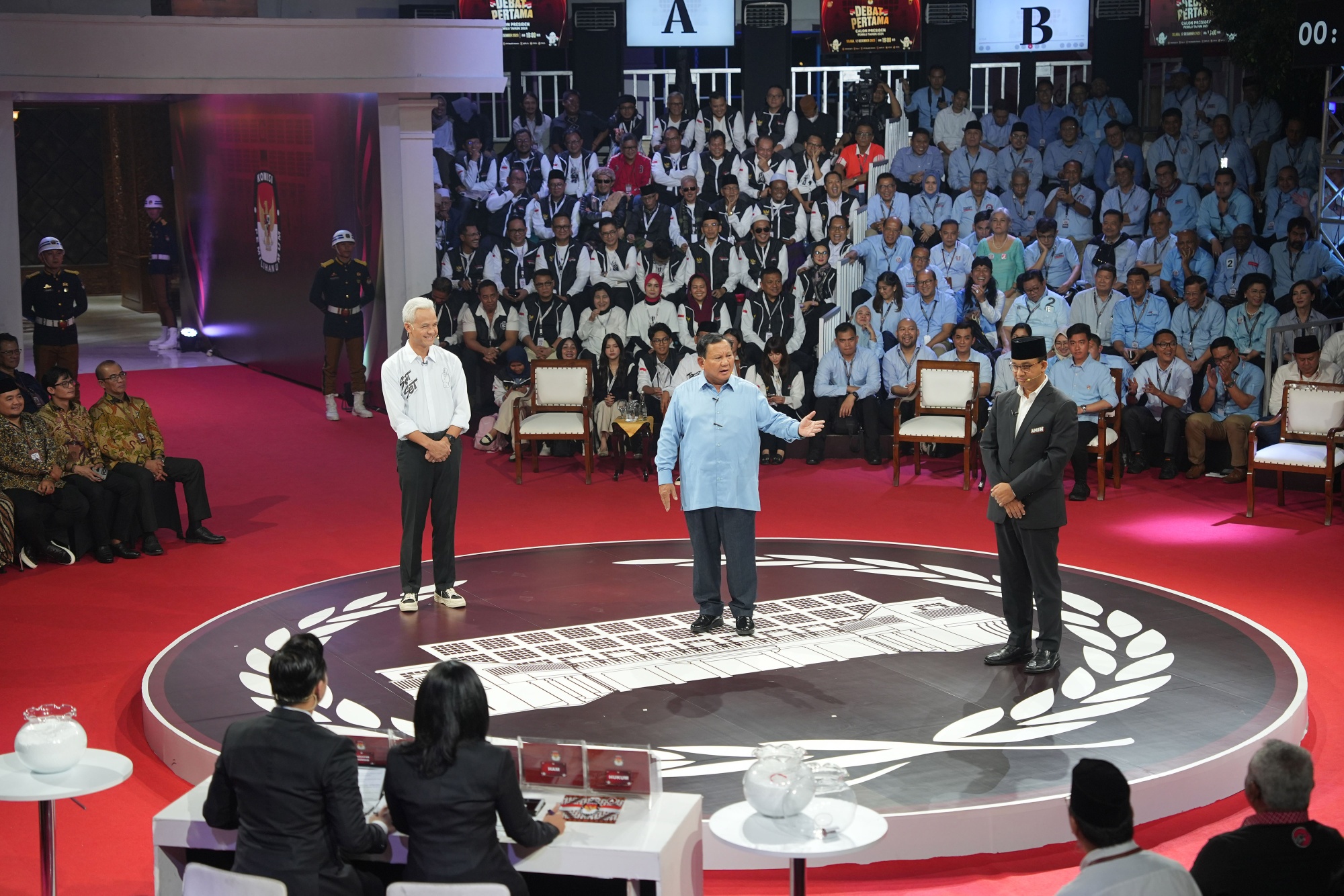 甘加尔·普拉诺沃(左起)、普拉博沃·苏比安托和阿尼斯·巴斯韦丹在12月雅加达的第一次总统辩论期间。摄影师:迪马斯·阿迪安/Bloomberg根据拟议的联盟,如果2月14日的选举进入6月的第二轮选举,甘加尔或巴斯韦丹(他们在政策立场上相反)将相互支持。国防部长目前在他第三次竞选总统时领先民意调查,而甘加尔和巴斯韦丹则落后。