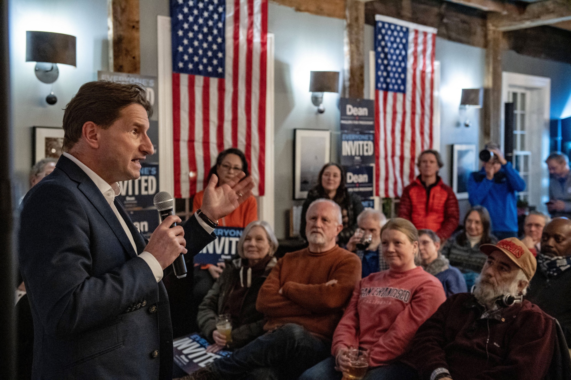 迪恩·菲利普斯在新罕布什尔州彼得伯勒的一次竞选活动中。摄影师:Joseph Prezioso/AFP/Getty Images菲利普斯由企业家安德鲁·杨介绍,后者曾竞选2020年的民主党提名。