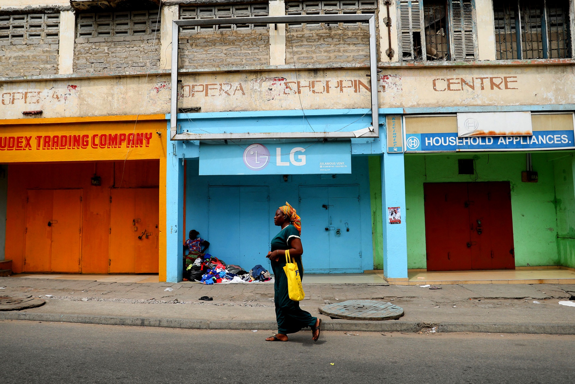 一名妇女走过加纳阿克拉的关闭商店,时间是2022年10月。摄影师:Nipah Dennis/AFP/Getty Images尼日利亚也可能获得救济。其财政部长透露,该国正在与世界银行谈判,以获得高达15亿美元的预算支持。