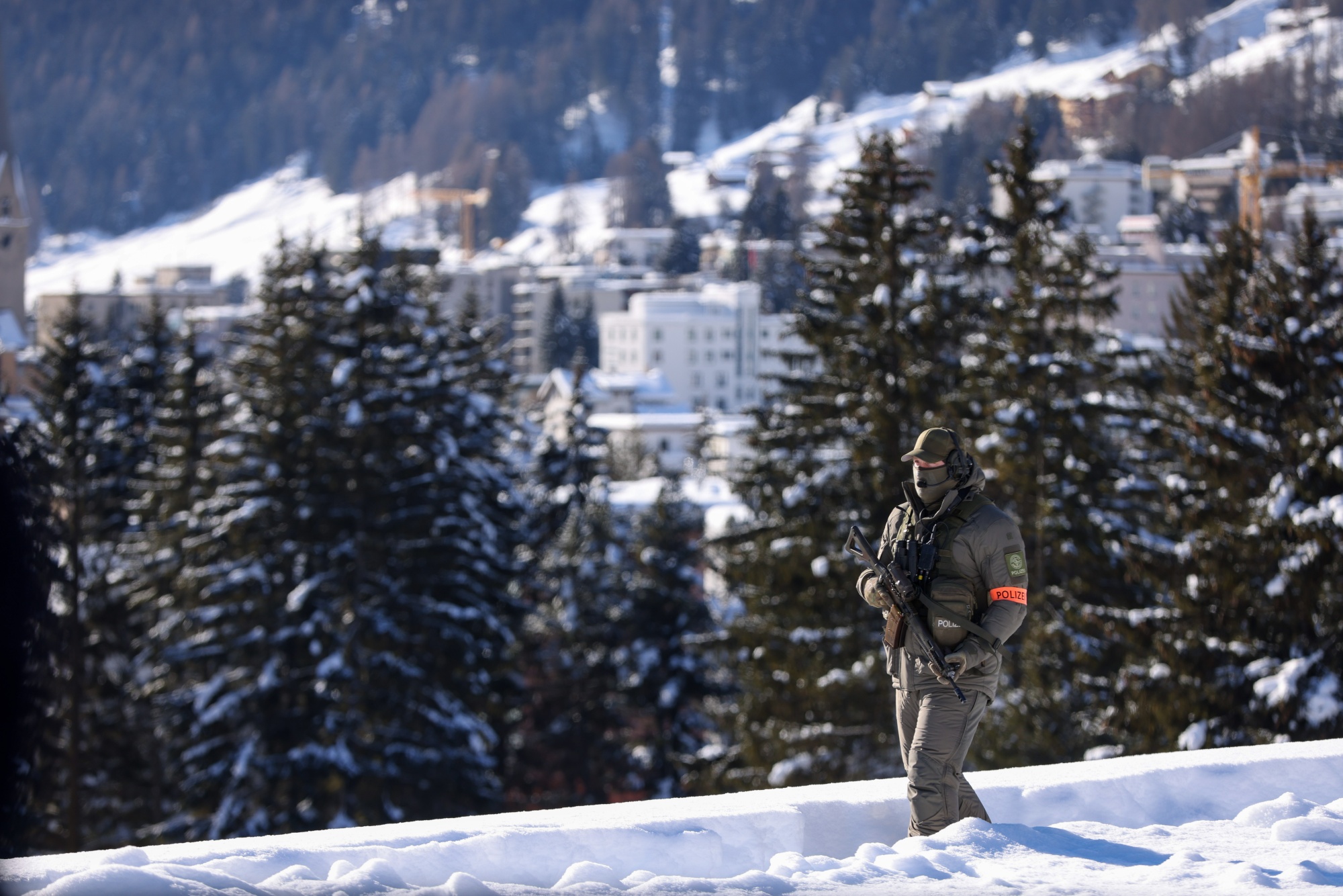 瑞士警察携带突击武器巡逻,这是对达沃斯泡泡外危险世界的冷静提醒。