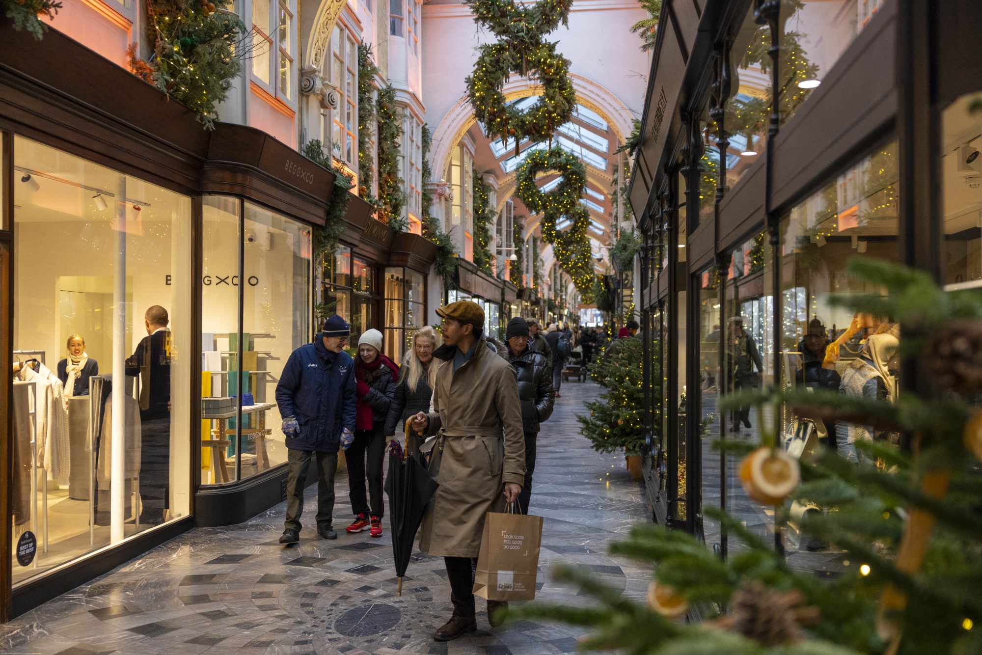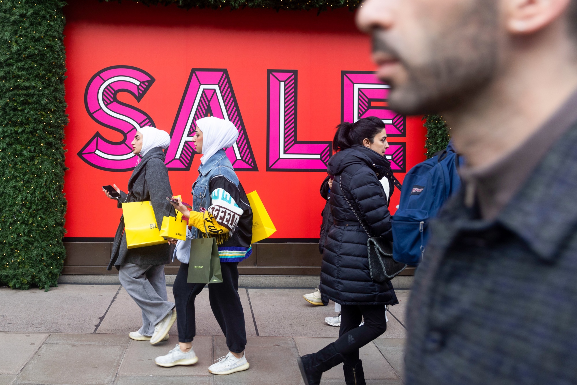 伦敦的购物者在十二月。摄影师:Jason Alden/Bloomberg调查显示零售商业疲软。 英国零售联合会 表示,12月份的销售增长仅为去年同期的1.7%。巴克莱信用卡数据 显示,与2022年同期相比,12月份的支出增长减半,这表明购物者在圣诞节期间削减了礼物和大宗购买。
