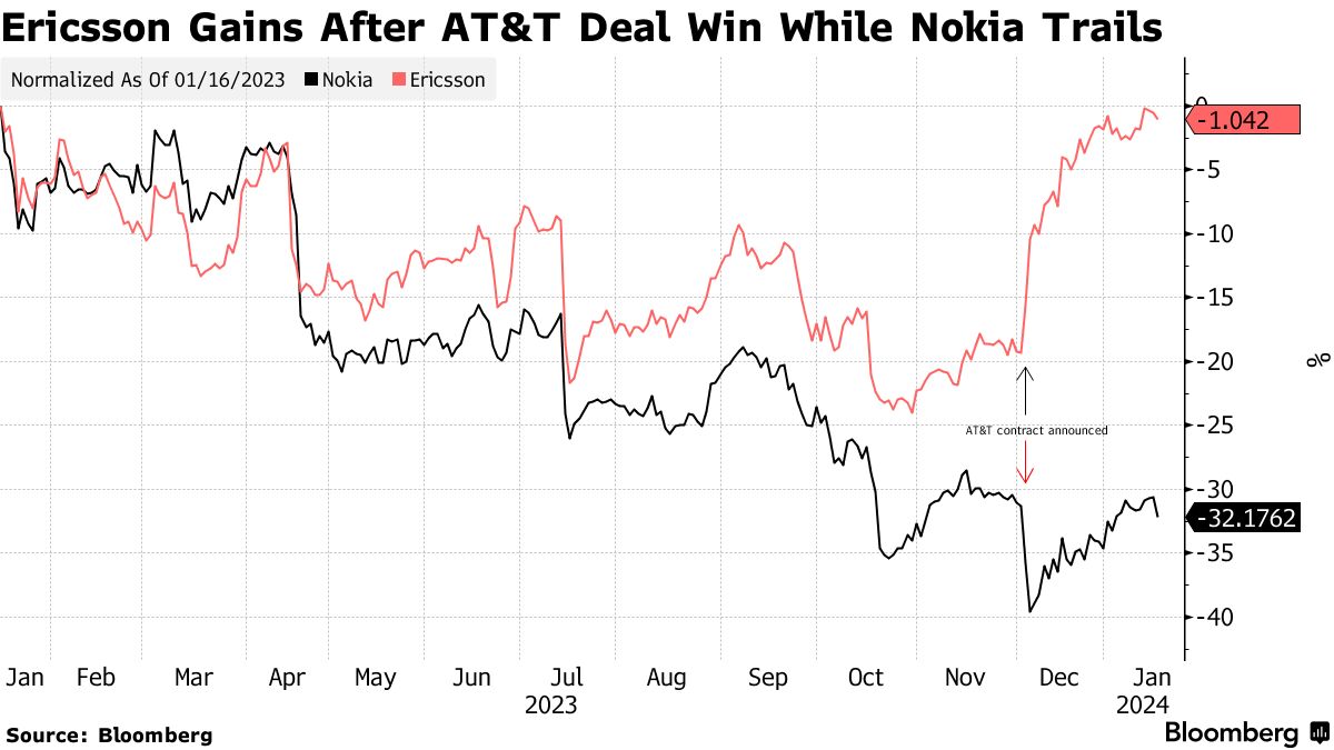 **星期四:**诺基亚(NOKIA FH)2024年的预测将成为其第四季度报告中最受追捧的项目,因为这家芬兰公司表示,它将错过去年的目标。随着运营商推迟对5G技术的支出,销售的阻力一直在增加,因此诺基亚将不得不实现“雄心勃勃”的成本削减,以保持投资者的支持,彭博社称。