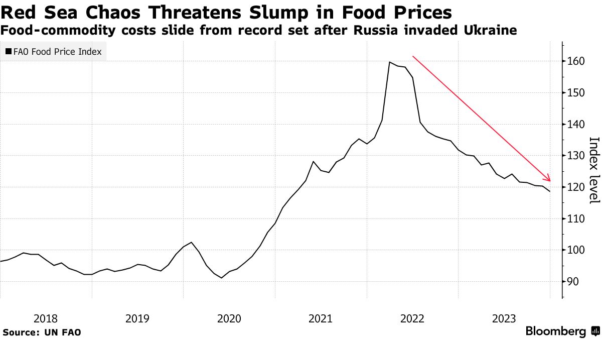 红海袭击:全球食品贸易受到干扰,可能导致食品价格上涨 - 彭博社