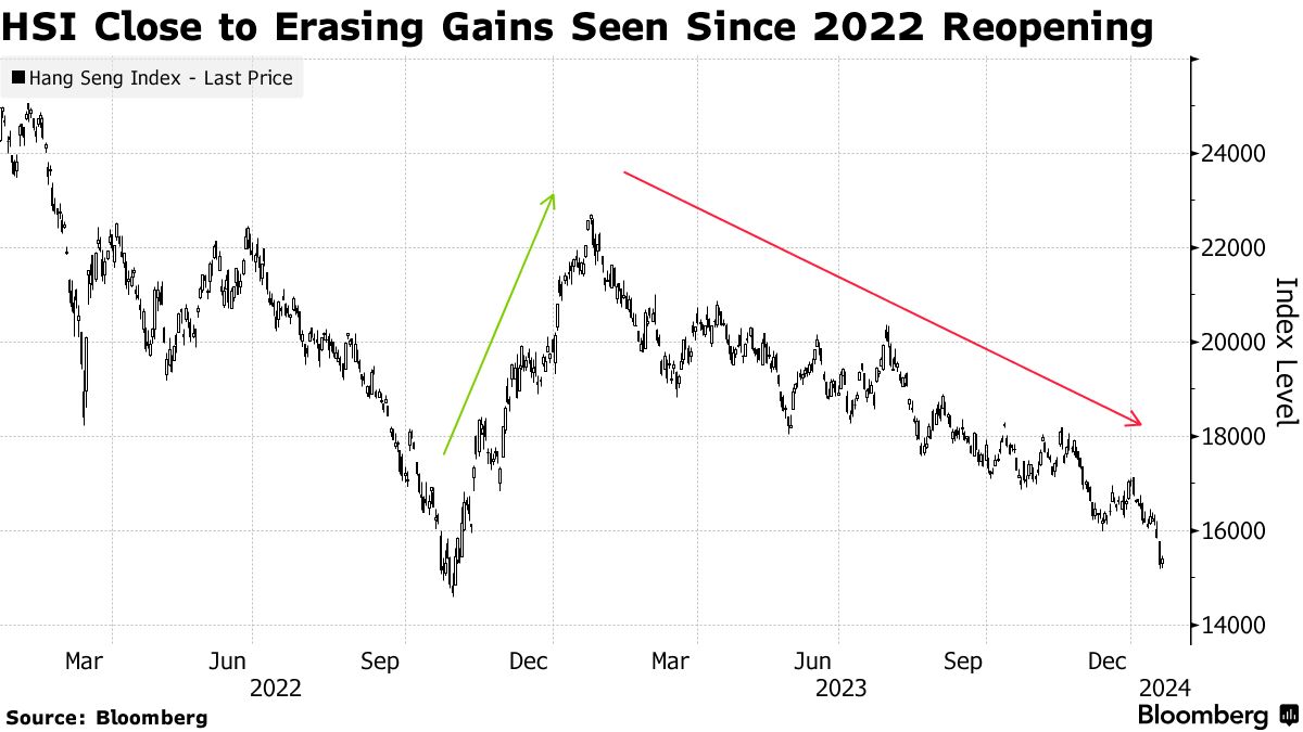 “市场一开盘,香港股市就跌破了15800点的支撑水平,导致衍生品市场中的许多产品被撤回,”香港券商光大证券的首席执行官Edmond Hui说。“现货市场触发了清算订单和止损订单,从而加剧了下跌。”