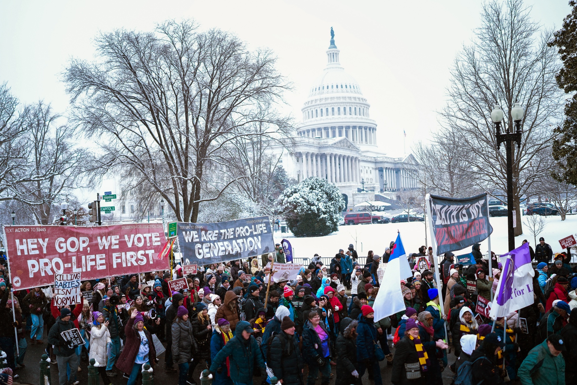 反堕胎示威者今天在美国国会大厦前行进,参加了年度的生命之行。