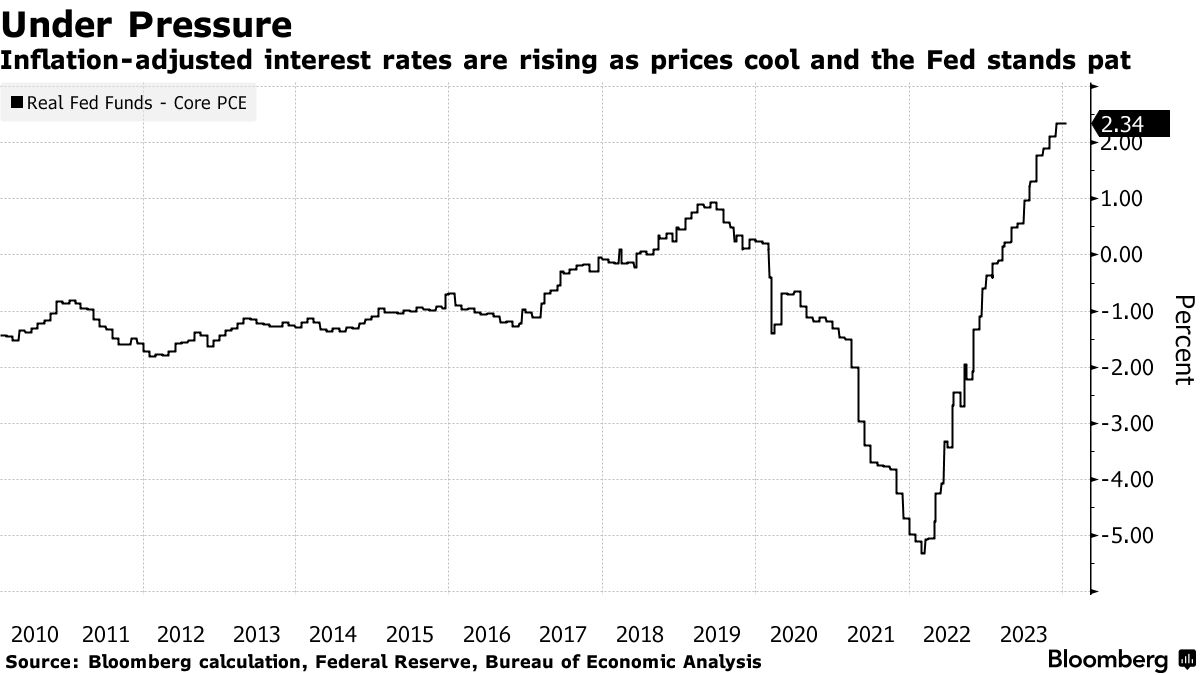 “如果我们在通货膨胀方面继续比预期更快地取得惊人进展,那么我们必须考虑这一点来确定限制水平,”芝加哥联储主席奥斯坦·古尔斯比在周五接受采访时在CNBC上说道。随着通货膨胀下降,“我们显然会评估其响应性。”