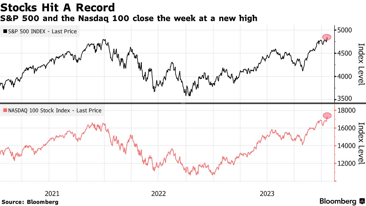 标普500指数(SPX)、纳斯达克100指数(NDX)在联邦储备降息预期下创下新高——彭博社