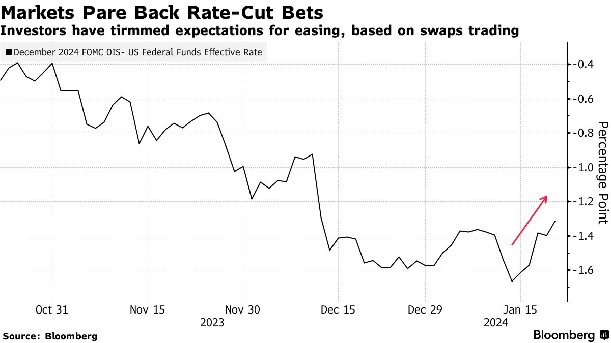 这发生在一大批美国央行官员对降息猜测进行反击之际。亚特兰大联储行长拉斐尔·博斯蒂克敦促决策者谨慎推进宽松政策,而联储理事克里斯托弗·沃勒似乎质疑了目前的紧急降息的必要性。因此,原本预计今年将有六次降息的交易员已将赌注减少到五次,并且对它们将在三月开始的确定性也比年末时更低。