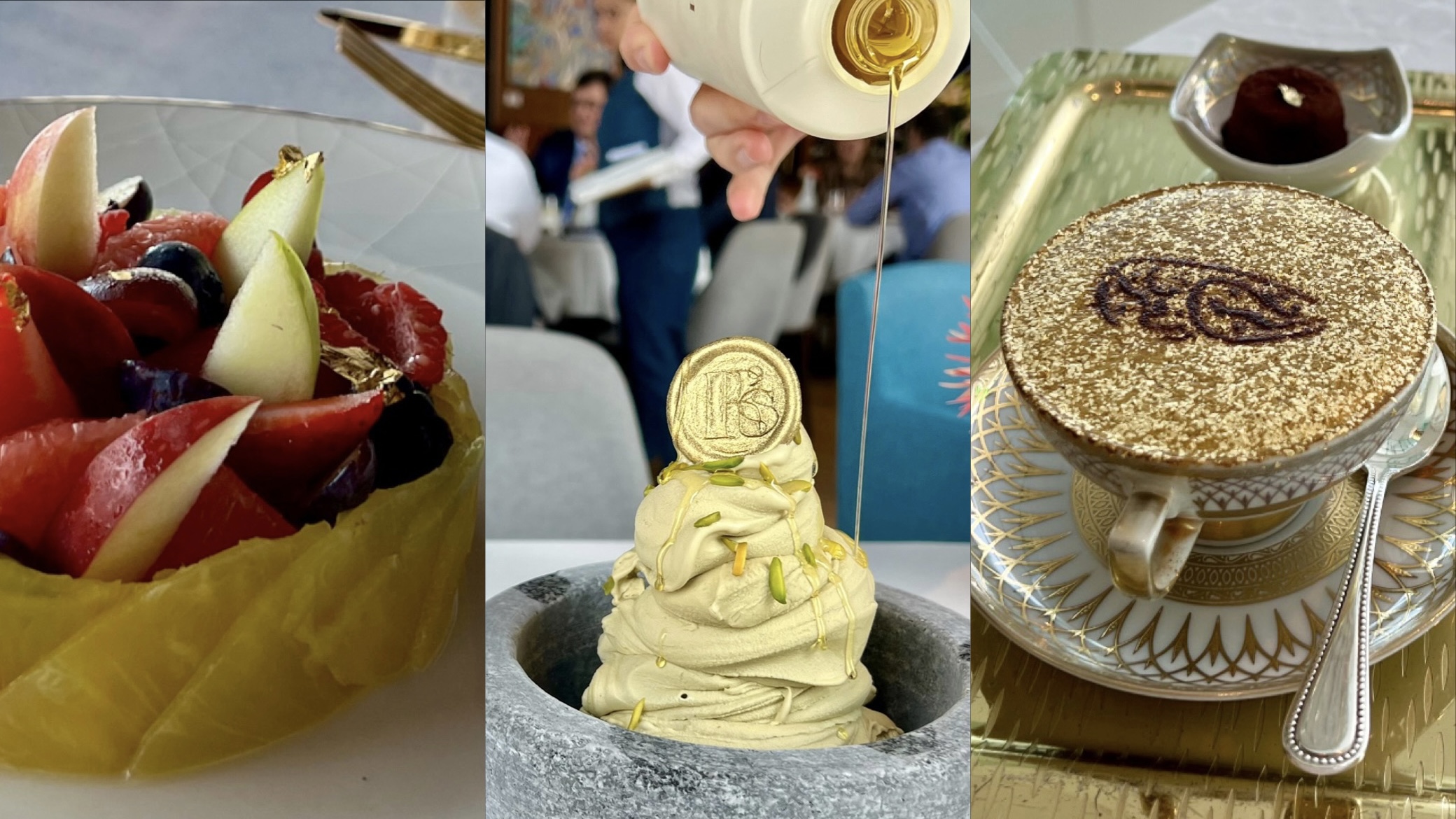 如果你在迪拜的食物不是镀金的,那还能吃吗?从左至右:在FRNDS Cafe的水果挞;在Roberto’s的开心果冰淇淋上淋上橄榄油;在Burj Al Arab的金色卡布奇诺。摄影师:Lisa Fleisher/Bloomberg我打算在 HMS Mirdif 医院生孩子,这家医院刚刚开业两年多。当我在Instagram上发布了产房的参观视频时,朋友们评论说恢复室比他们曾经住过的任何公寓都要好,或者被壁橱的空间所震撼。标准房间由我的(强制性)医疗保险覆盖,但我可以升级到VIP套房,每晚大约再多花2000美元,或者选择每晚4000美元的皇家套房,或者每晚6000美元的公寓。