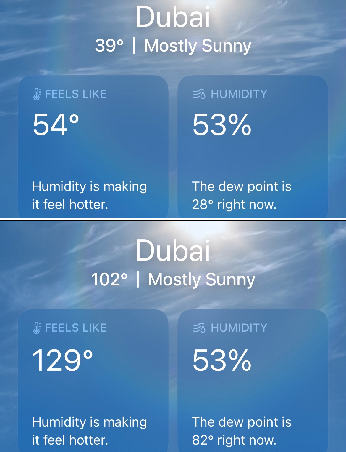 八月的典型一天。(上面是摄氏度,下面是华氏度。)摄影师:Lisa Fleisher/Bloomberg 哪家迪拜的海滩俱乐部拥有最好的海滩质量?