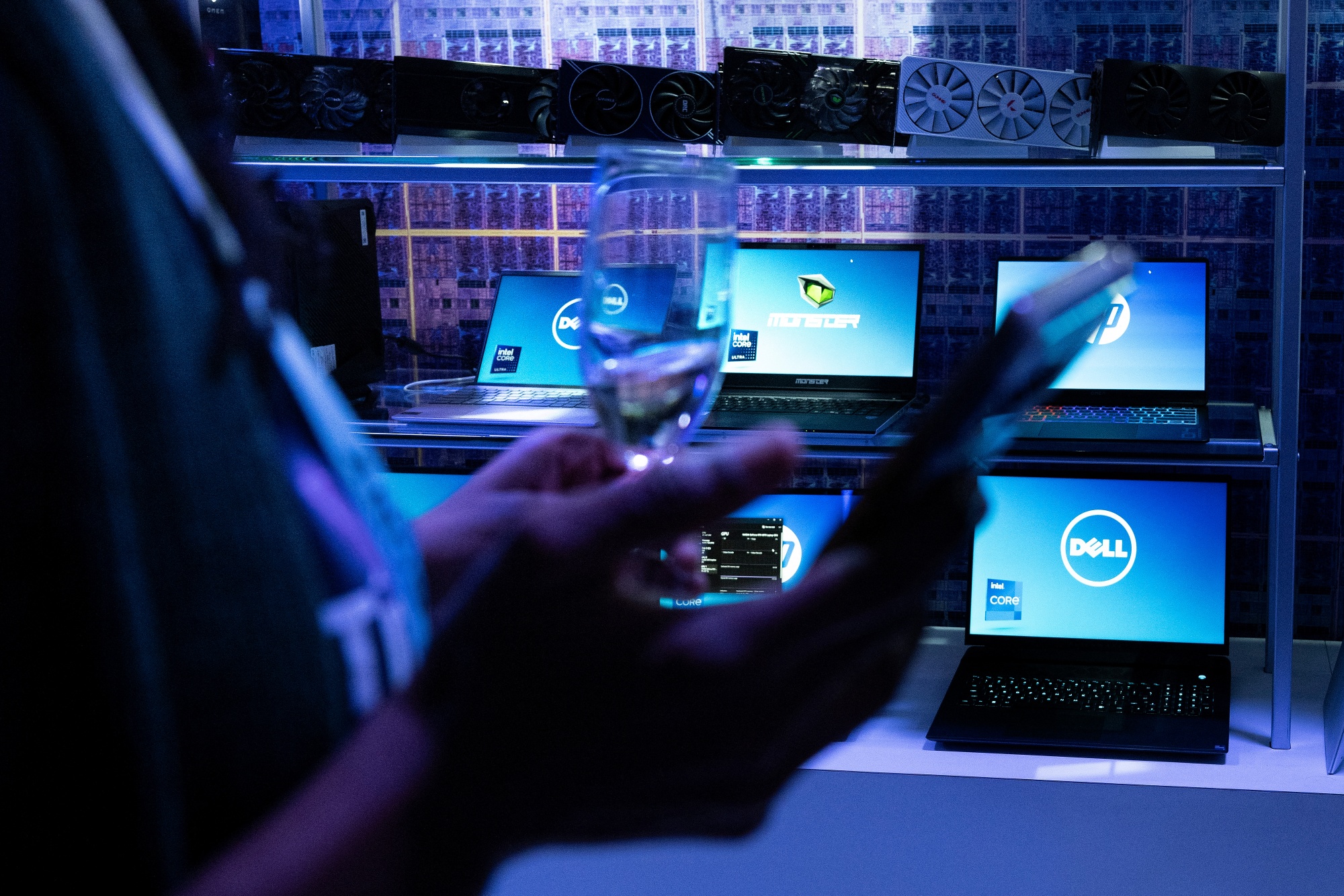 在拉斯维加斯举行的消费电子展上使用英特尔芯片的笔记本电脑。