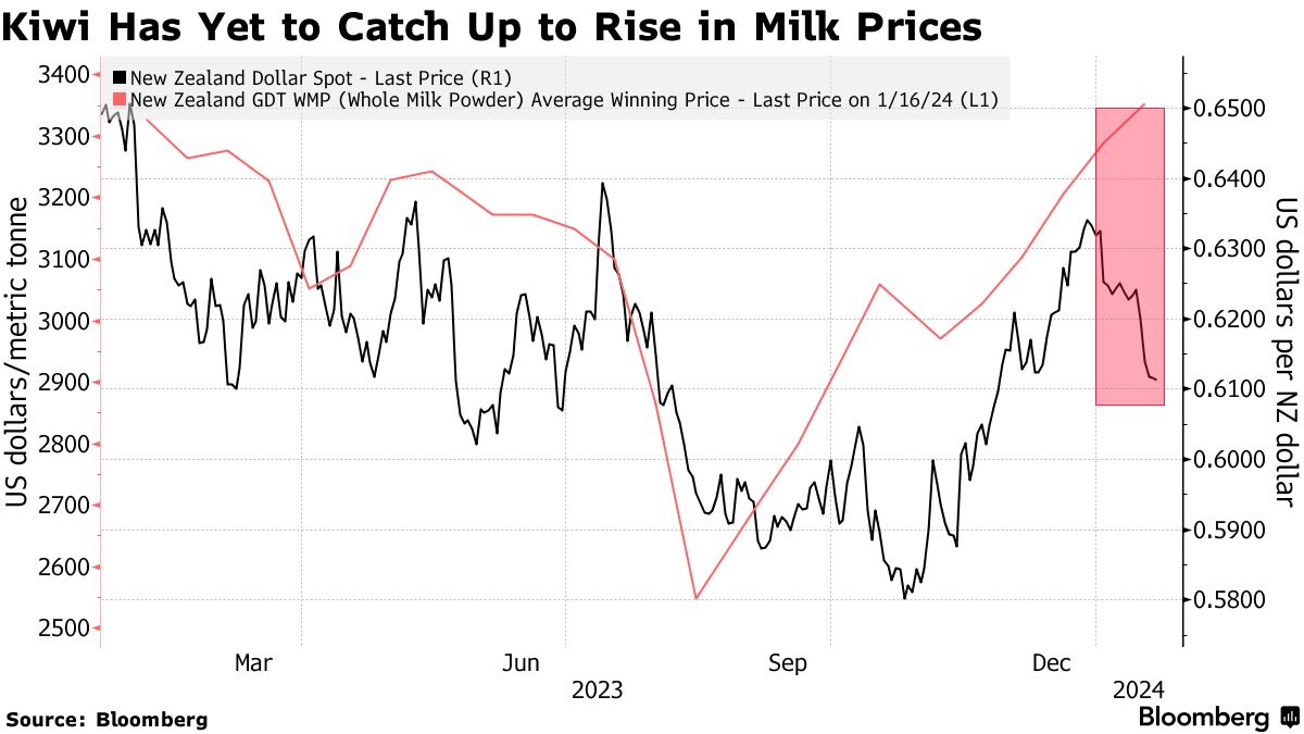 当然,货币仍然存在风险,因为随着美联储的降息被推迟,美元可能继续走强。彭博经济学表示,通胀可能低于新西兰储备银行的预测,而新西兰经济可能在年初进入技术性衰退。