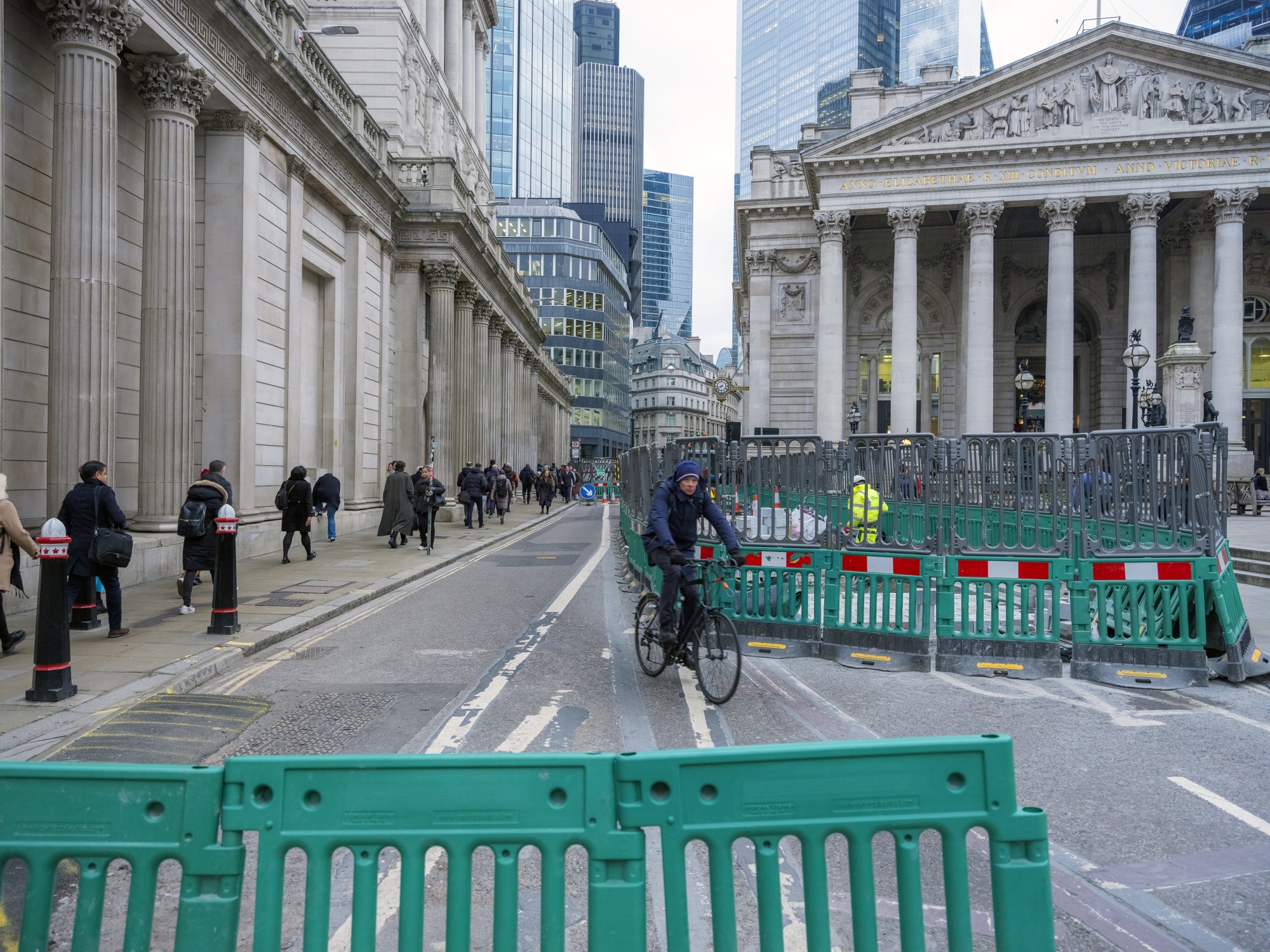 除了圣保罗大教堂和弗利特街的计划外,伦敦市现在已经关闭了英格兰银行外的纽德尔街——伦敦最具标志性的景观之一——以禁止机动车通行。在那里,你曾经会看到红色的双层巴士或黑色的出租车,现在却是更宽敞的人行道和自行车道。