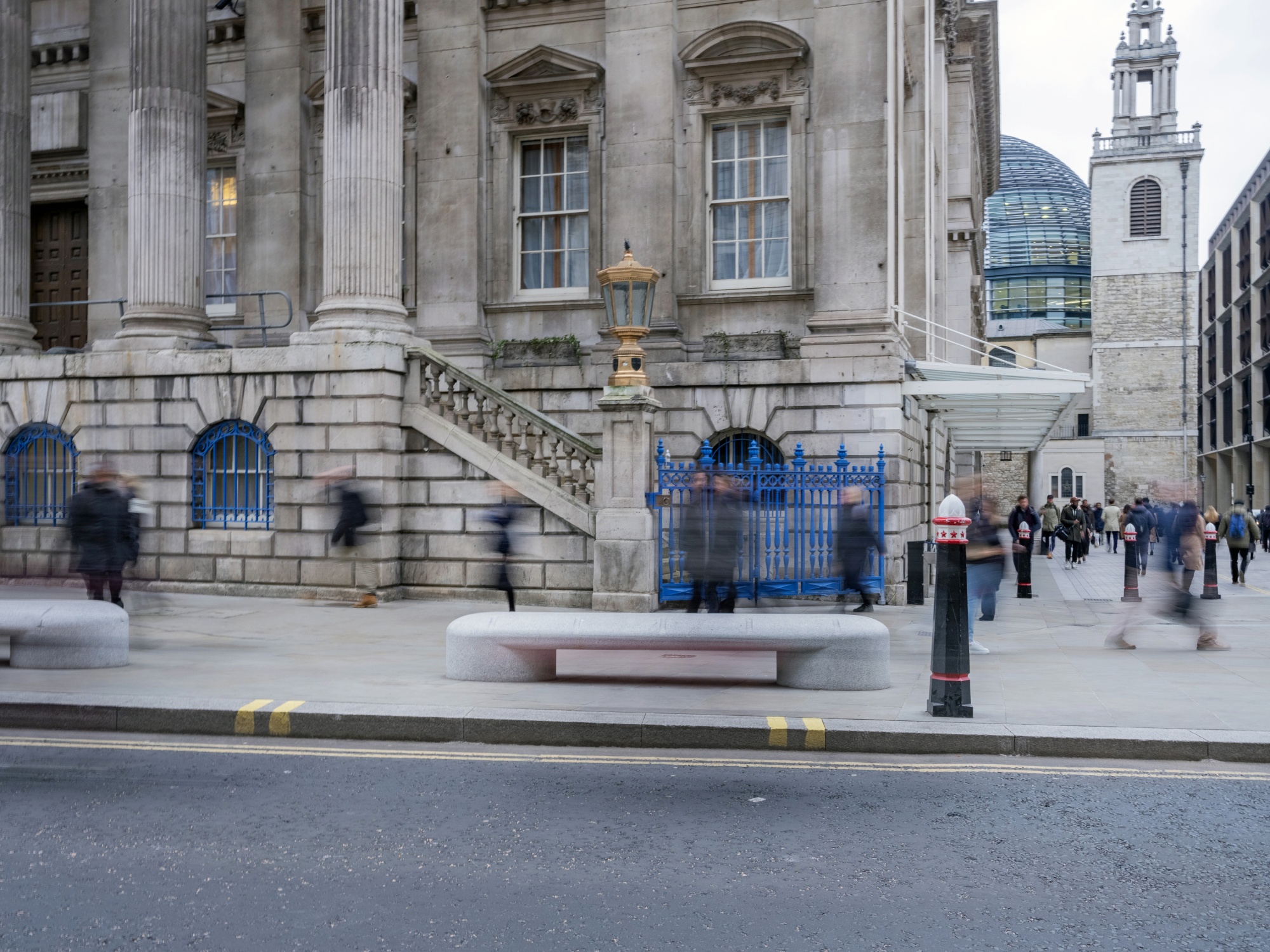 它们位于银行交汇处的一个最近扩宽的人行道上,这里是九条街道交汇处,处于英格兰银行、前伦敦证券交易所和市长府的阴影之下,每天早晨成千上万的人从地铁站出来,走过它们去传统的金融区工作。伦敦市政府希望一些工作人员能够坐下来,因为每个工作日这个交叉口禁止汽车通行12小时。