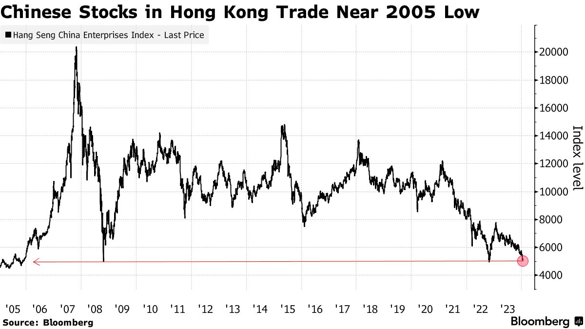 摄影师:Akio Kon/Bloomberg周一,香港的中国股票进一步下跌,跌至近20年来的最低水平,因缺乏新的经济刺激和市场支持措施加剧了投资者的悲观情绪。