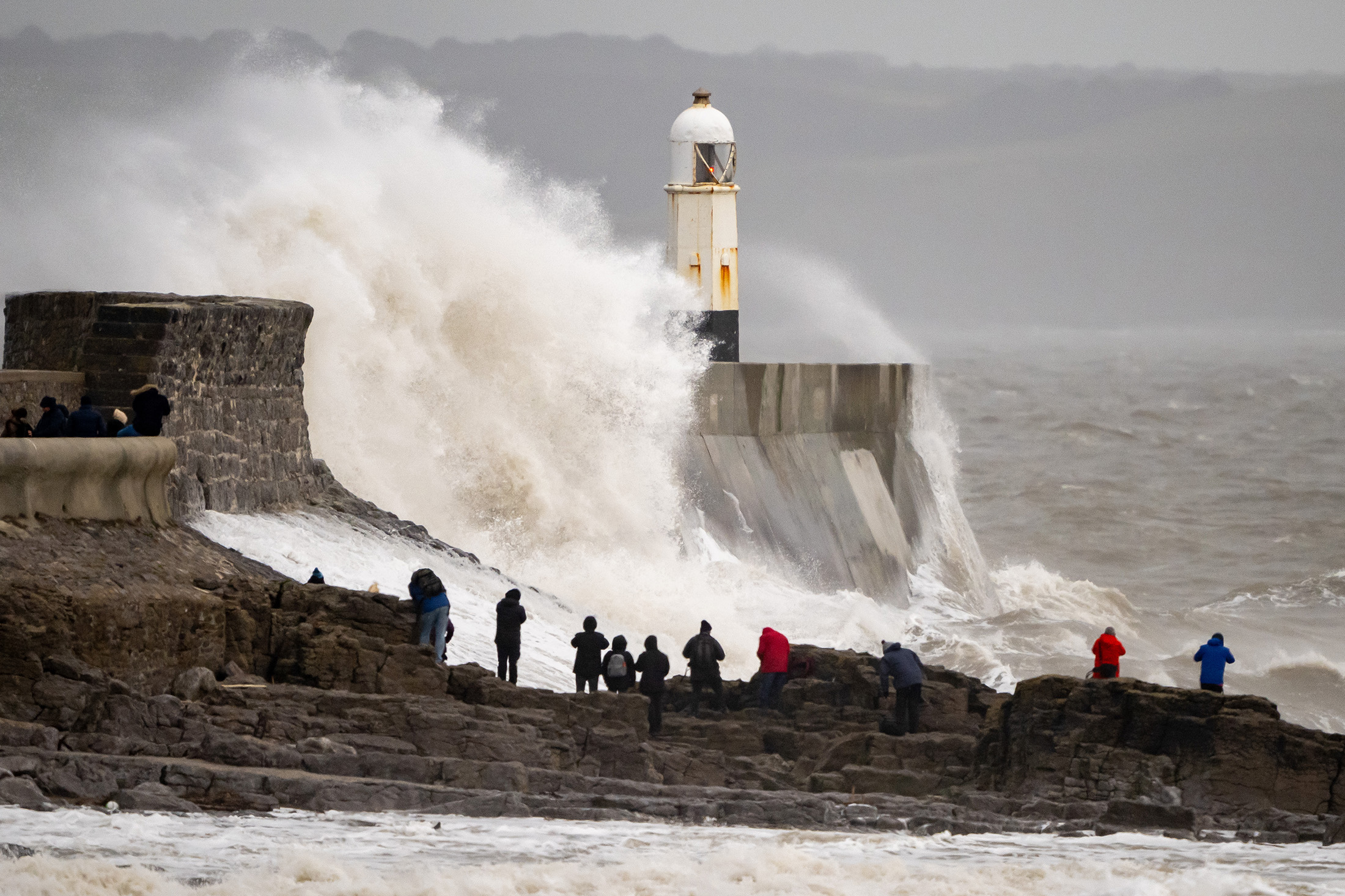 2024年1月21日,海浪冲击威尔士波斯科尔的港口墙。摄影师:Matthew Horwood/Getty Images阿姆斯特丹的斯希普霍尔机场周一取消了约130个航班,并警告说风速超过100公里/小时会导致延误。英国各地的航班也延误或取消,苏格兰的铁路服务受到严重干扰。