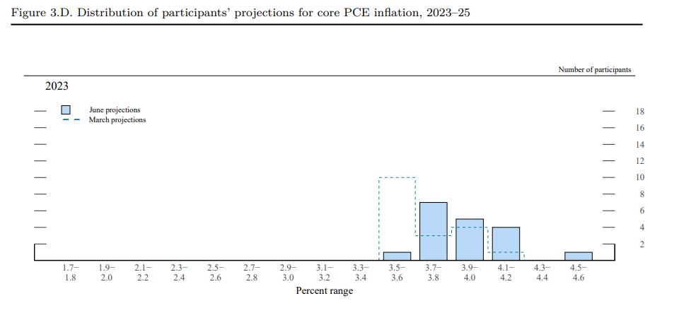 “19名委员会成员的中位数预测核心PCE通胀率为 3.9%,” Cummins 说道。自那时以来,数据出现了相当大的不同,Brevan Howard 预计下周公布的数据将显示通货膨胀率接近 3% —— 在短短六个月内出现了很大的失误。