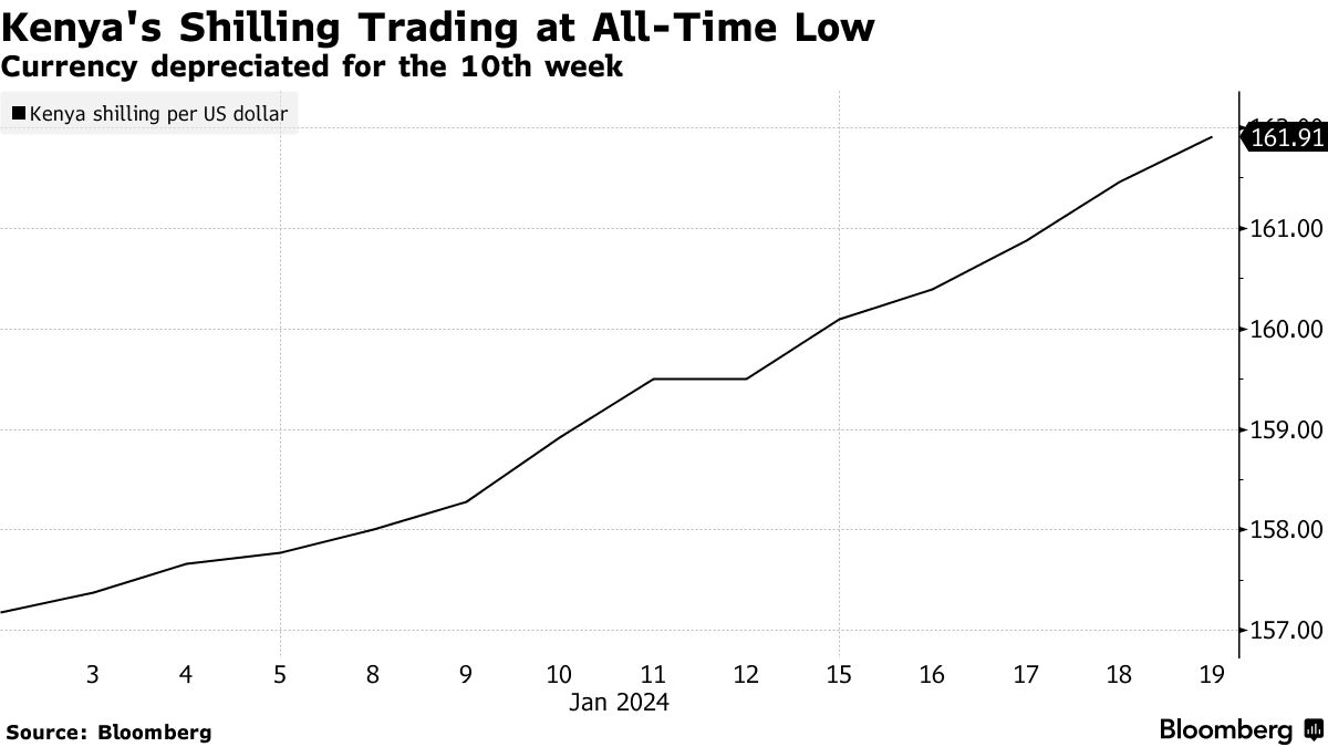 肯尼亚先令(KES/USD)创历史新低,面临欧元债券付款压力 - 彭博社
