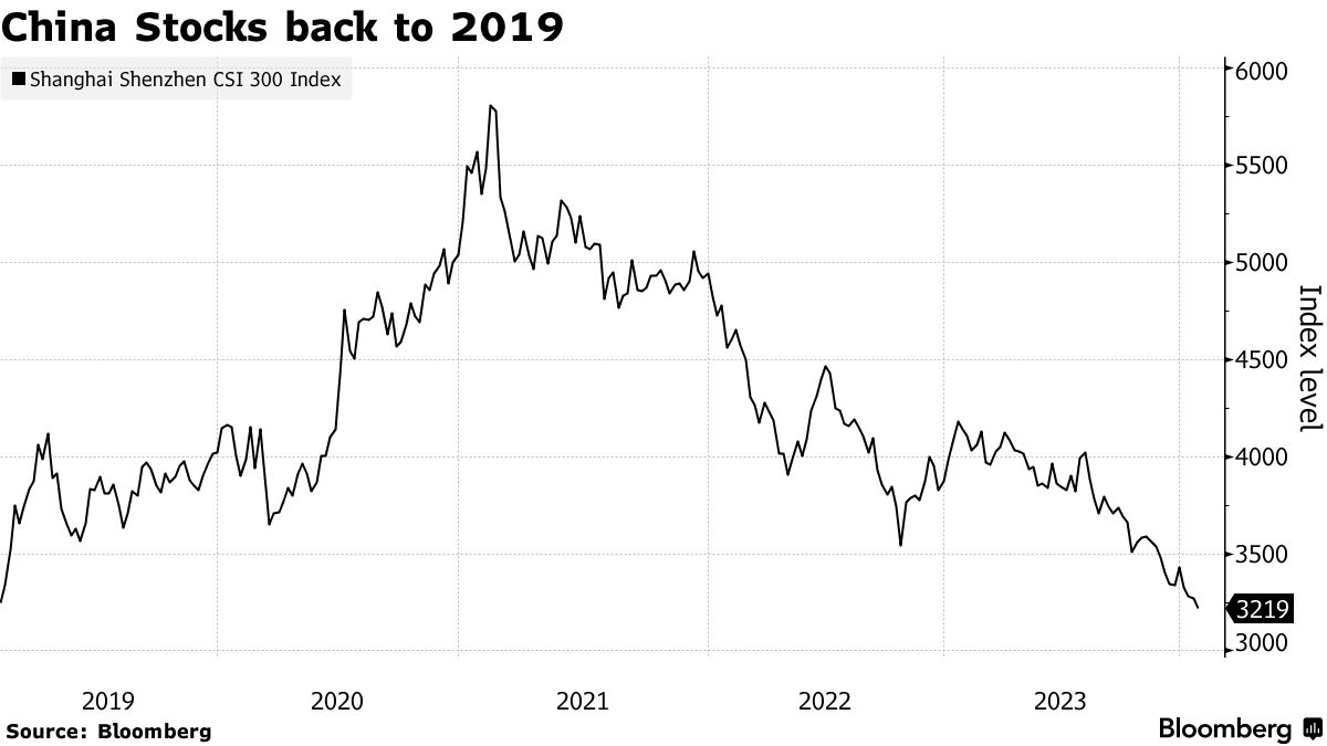 2022年底中国解除严格的Covid限制引发的反弹被证明是短暂的,消费者信心不足是压制股市的因素之一。CSI 300指数在过去九个月下跌了约20%。