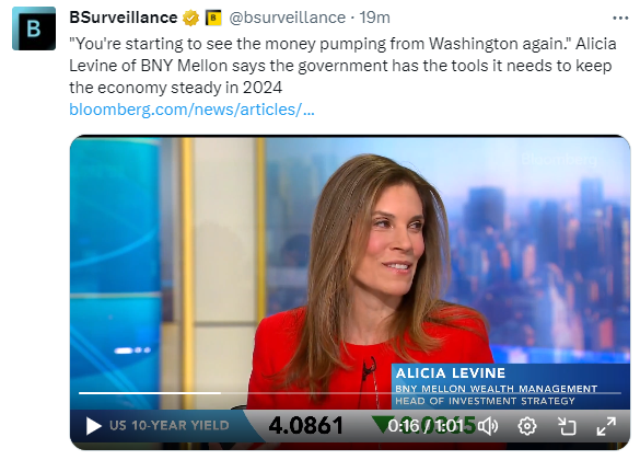 这早上在节目中几乎是所有的悲观情绪了 — 我们首次使用了新的、更明亮的布景,并且安玛丽·霍登成为了联合主持人,而汤姆·基恩则转到了彭博监控广播。除此之外,从Atlas Merchant Capital的鲍勃·戴蒙德到纽约梅隆银行的艾丽西亚·莱文,人们普遍认为美国经济表现良好,有很多东西可以购买。