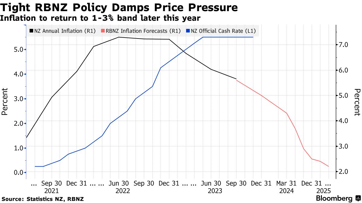 新西兰通货膨胀:消费者价格指数预计放缓,但不足以触发新西兰储备银行的降息 - 彭博社