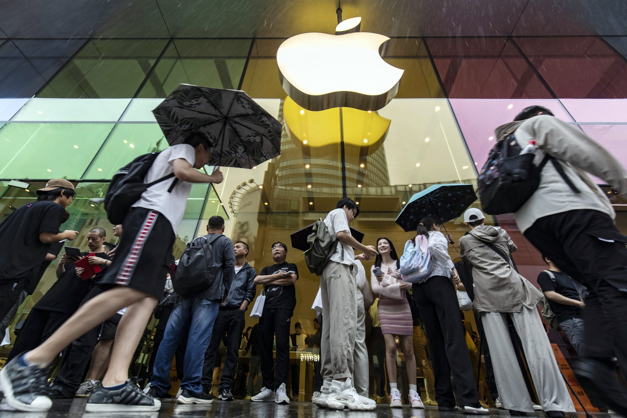 游客在2023年9月上海一家苹果商店排队购买iPhone 15的第一天。来源:彭博但是,华盛顿作为韩国安全的保证人和中国之后的最大贸易伙伴,仍然对其盟友保持影响力。美国还通过其对芯片制造技术的控制以及《芯片和科学法案》保持影响力,该法案为在美国境内建厂的公司提供1000亿美元的资金。