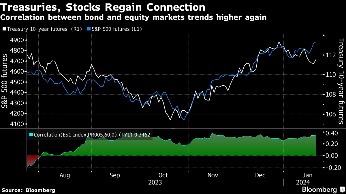 国债和标普500期货之间的中期相关性与去年底一样强,随着零售销售和消费者信心的数据强于预期,软着陆的叙事再次出现。