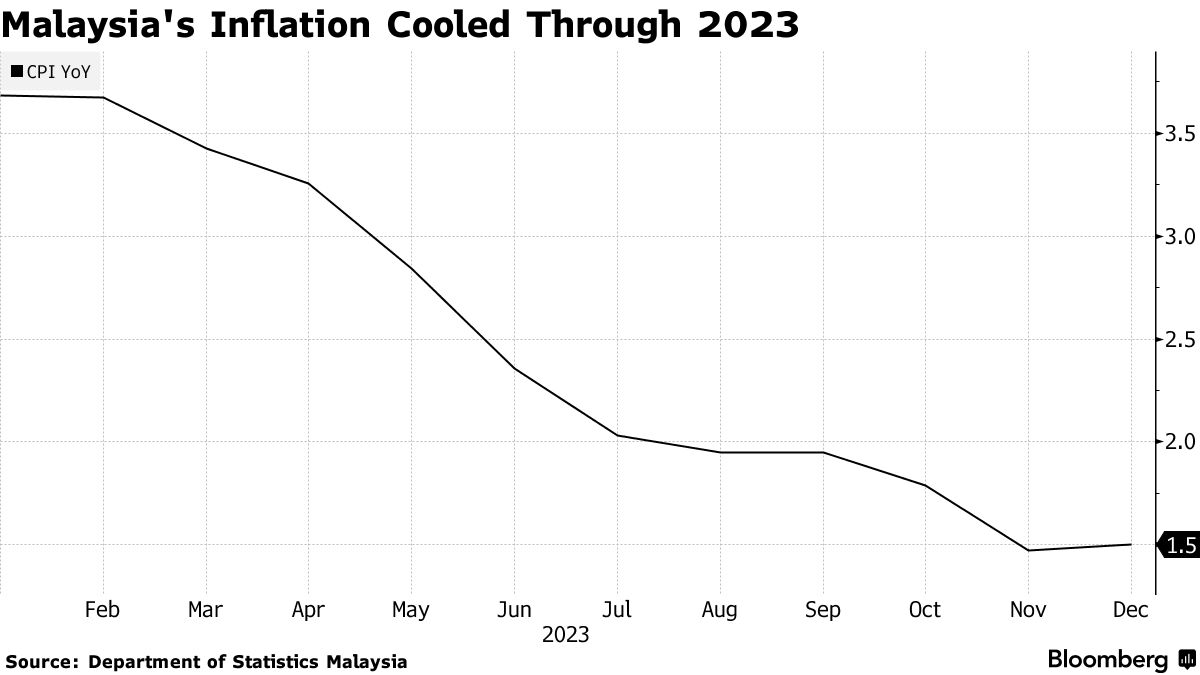 消费价格在过去一年里在马来西亚稳步下降,部分原因是受到后疫情时期的货币政策收紧的滞后影响,以及去年约810亿令吉(170亿美元)的燃油、电力和食用油补贴的影响。