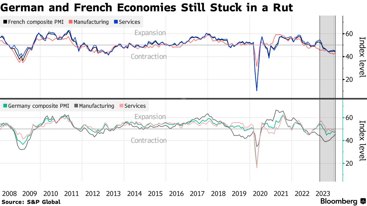 欧洲经济最新动态:法国和德国经济收缩 - 彭博社