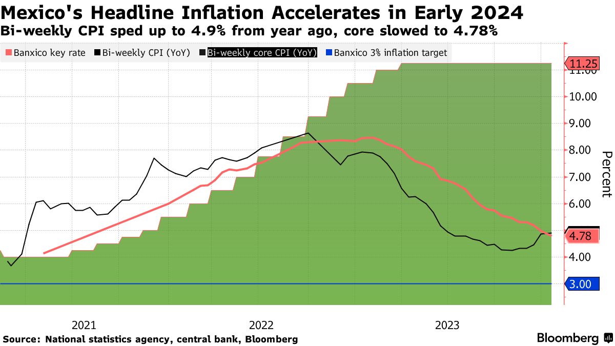 墨西哥1月初的总体通胀率意外加快-彭博社