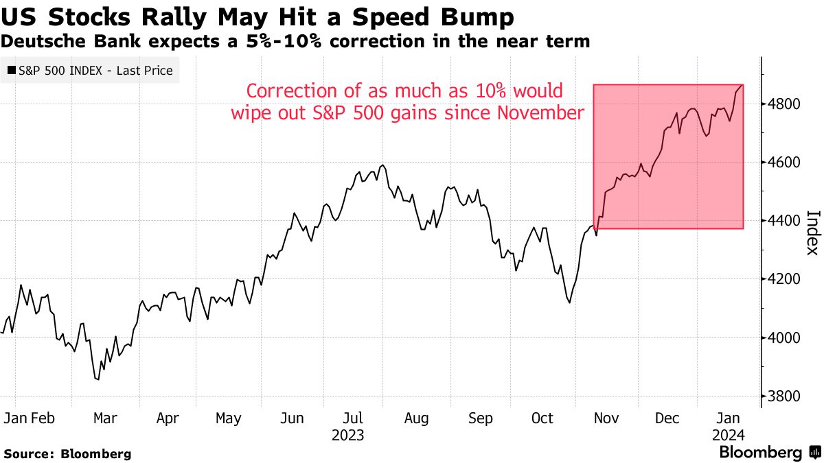 美国股市可能会在未来几个月出现调整,因为经济放缓,据德意志银行AG称。