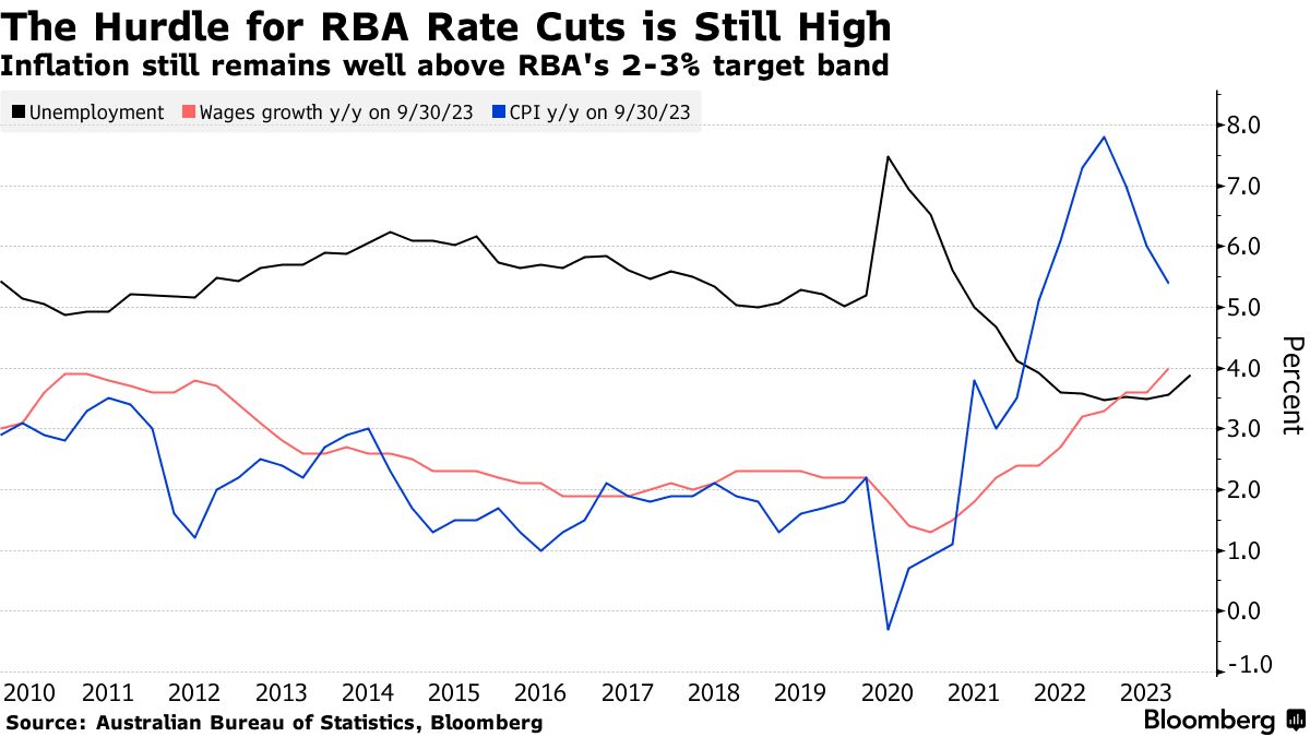 澳大利亚央行预计将在今年最后三个月开始降息周期,经济学家预测,与主要央行相比,澳大利亚的通胀问题仍然棘手,需要更长时间才能回归目标。