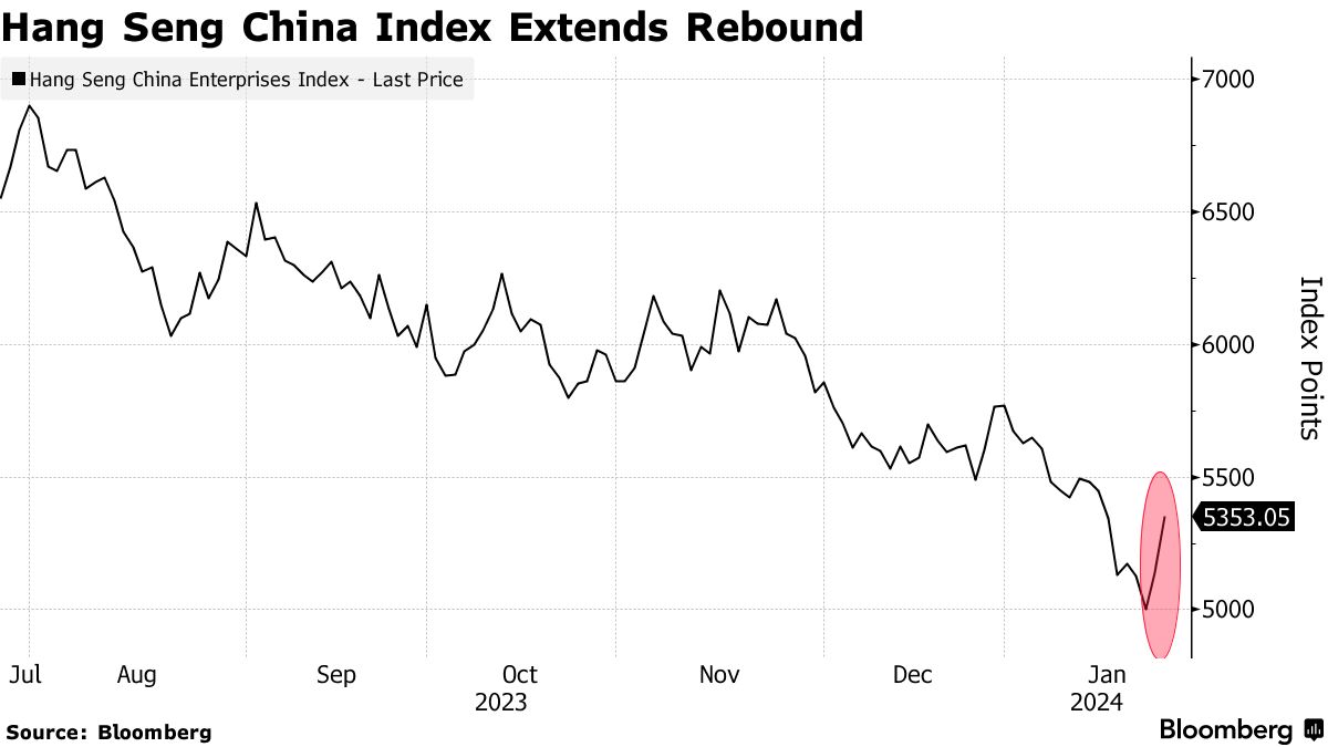 中国人民银行行长潘功胜周三表示,2月5日将下调准备金率0.5个百分点,为市场提供1万亿元人民币(合1400亿美元)的长期流动性。宣布后,监管机构加大了支持疲软的房地产和股市的措施。