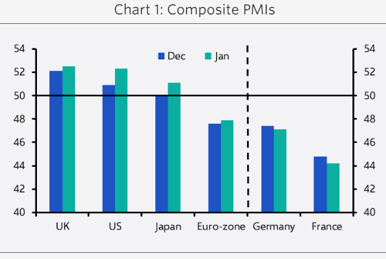 最新的采购经理人指数,由经济资本总结如下,显示法国和德国持续放缓,尽管整个欧元区并非如此。欧洲央行似乎有更强烈的动机进行削减,以避免主要经济放缓: