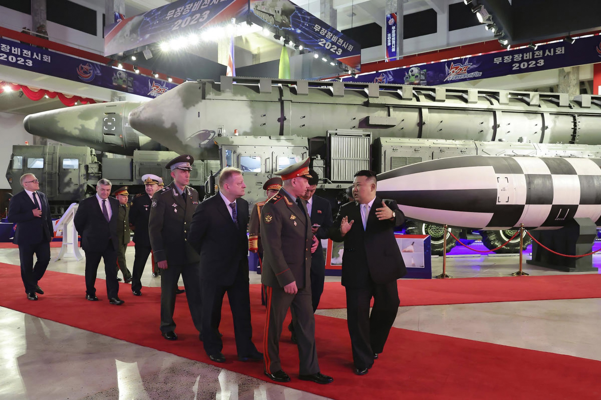 金正恩和俄罗斯国防部长谢尔盖·绍伊古参观了2023年7月在平壤举行的一次武器展览。来源:朝中社/韩国联合通讯社白宫国家安全委员会发言人约翰·柯比本周在华盛顿告诉记者,美国正在“非常密切地”关注朝鲜的局势,并补充说“我们仍然相信我们在半岛上保持的防御姿态是适应风险的。”