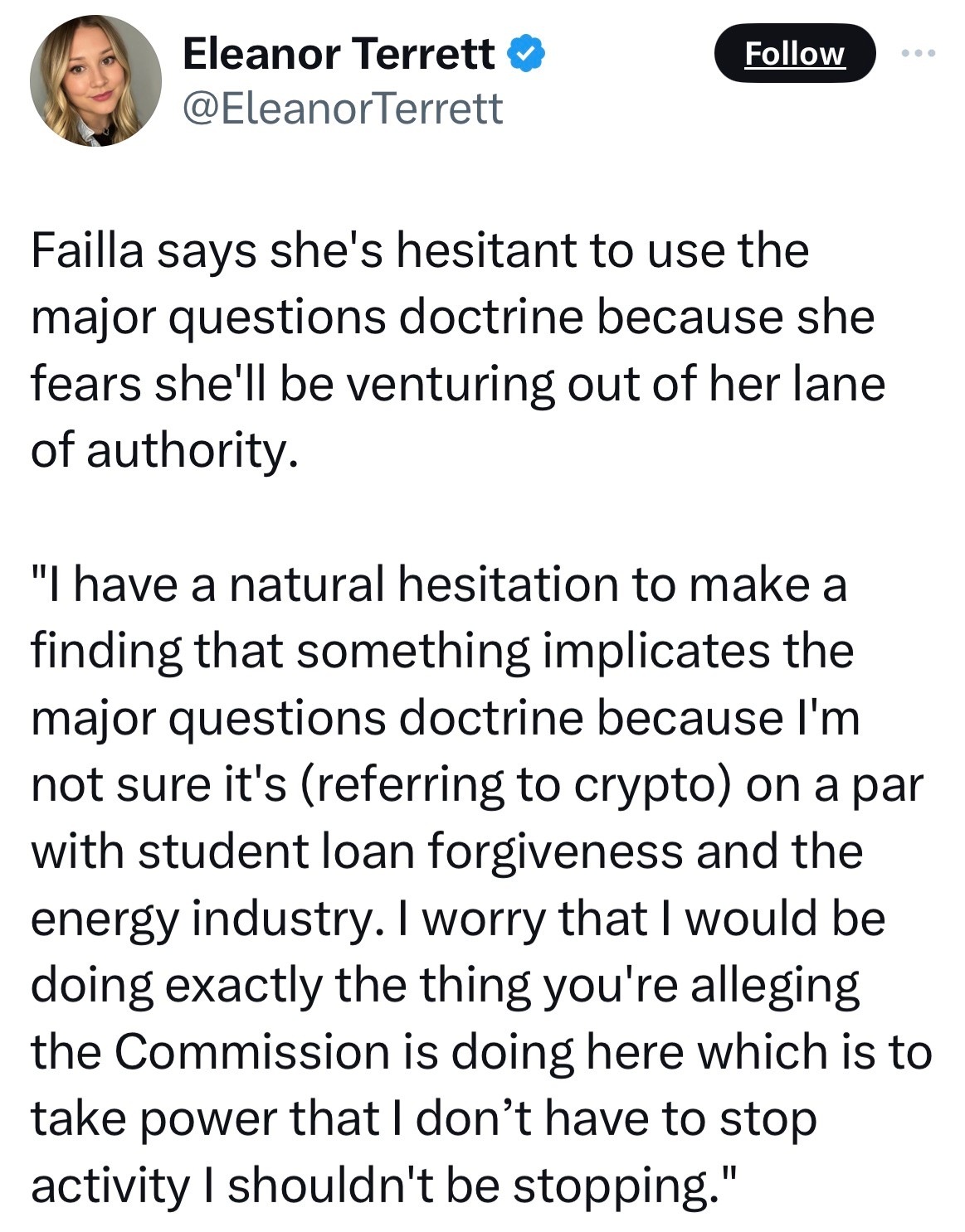 在切尔维恩案件上进行辩论时,律师保罗·克莱门特甚至引用了证券交易委员会的加密货币案例作为行政权力过度的证据: