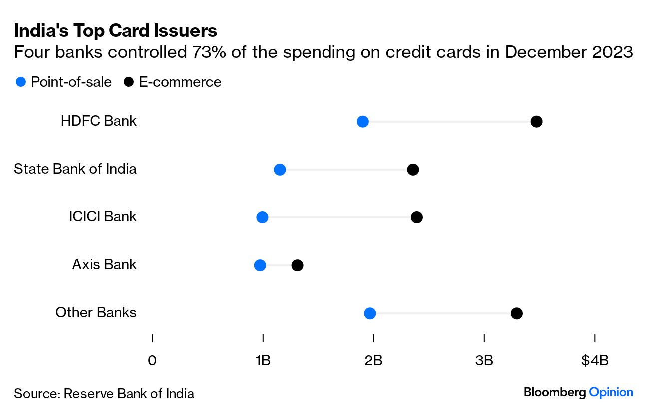 在大流行期间,印度遭到了中国掠夺性放贷应用的入侵,但监管机构已经将它们赶走了。在印度的60多家银行中,约75%的信用卡业务价值集中在印度的四家银行——印度标准银行、印度国家银行、印度工业信贷银行和安盛银行。更多的放贷机构不愿意进入这个行业或扩大业务的原因在于,获客和服务成本约为每位客户6,000卢比(70美元),包括专门用于催收和风险管理的软件。对于一个月收入约为40,000卢比的人来说,这笔开支是无法从其支出中收回的,而这个收入水平正好是外包公司通常支付给新编码人才的中等水平。外包公司通常支付给新编码人才的中等水平。